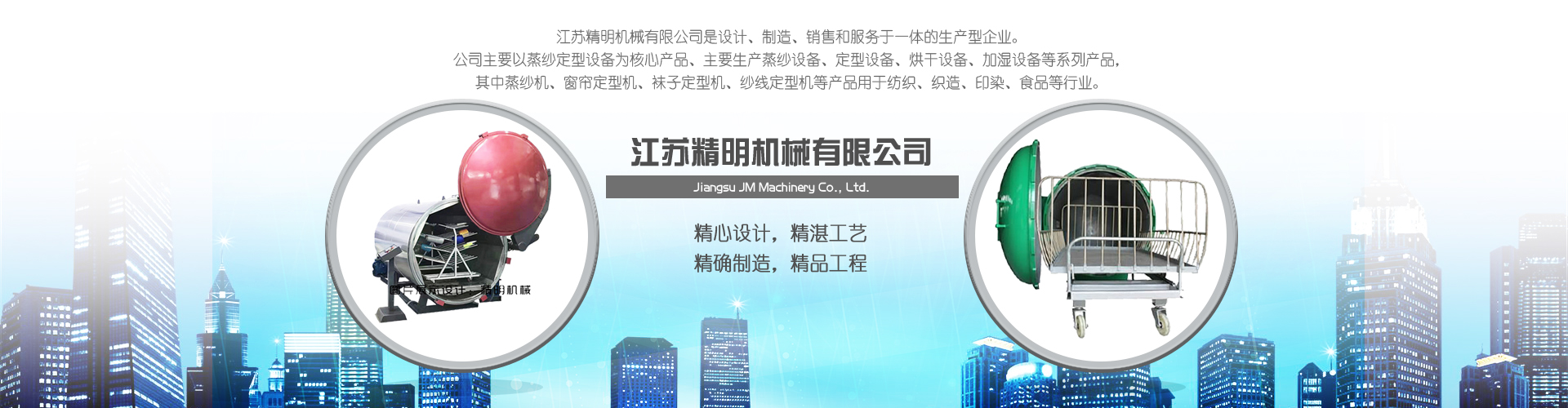 江蘇精明機(jī)械有限公司是設(shè)計(jì)、制造、銷售和服務(wù)于一體的型企業(yè)。公司主要以蒸紗定型設(shè)備為核心產(chǎn)品、主要蒸紗設(shè)備、定型設(shè)備、烘干設(shè)備、加濕設(shè)備等系列產(chǎn)品,其中蒸紗機(jī)、窗簾定型機(jī)、襪子定型機(jī)、紗線定型機(jī)等產(chǎn)品用于紡織、織造、印染、食品等行業(yè)。主要經(jīng)營包括:1、蒸紗設(shè)備:蒸紗機(jī)、蒸紗箱、蒸紗缸、蒸紗鍋、蒸紗小樣機(jī)等2、定型設(shè)備:窗簾定型機(jī)、襪子定型機(jī)、圍巾定型機(jī)、手套定型機(jī)、紗線定型機(jī)、低彈絲定型機(jī)、丙綸絲定型機(jī)等3、烘干設(shè)備:布料烘干機(jī)、拉幅烘干機(jī)、染整烘干機(jī)等4、加濕設(shè)備:棉紗加濕機(jī)、氣流紡?fù)布喖訚?..